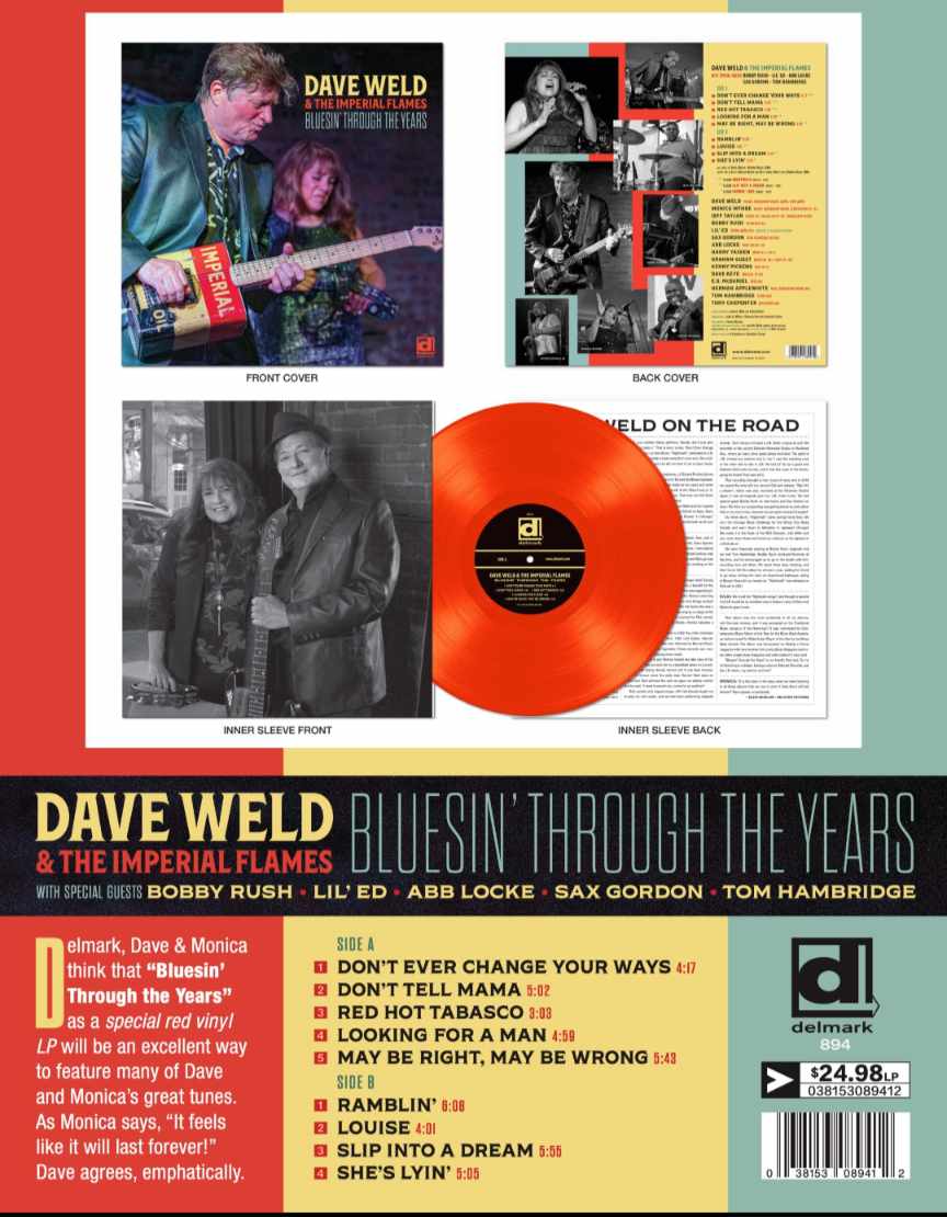 Dave Weld and The Imperial Flames, an authentic, real deal blues band, high energy with versatile talent, variety, and a cohesive show that includes original driving houserockin blues, blues rock, funk, boogie and Soul. Blues originals are classic in nature, the standards are revitalized with striking three part vocal harmony, three vocal stylists, Passionate slide guitarist, Dave Weld mentored from Grammy Winning Master J.B. Hutto and legendary slideman, along with blues diva and two time Rami winner Monica Myhre (Mona Rose), a kicking rhythm section consisting of the smooth voice of Jeff Taylor holding a solid beat on drums, Kenny Pickens blazing on bass, Harry YaSeen, tutored by the famous Art Hodes on piano/organ and the Mississippi saxman, Rogers Randle.